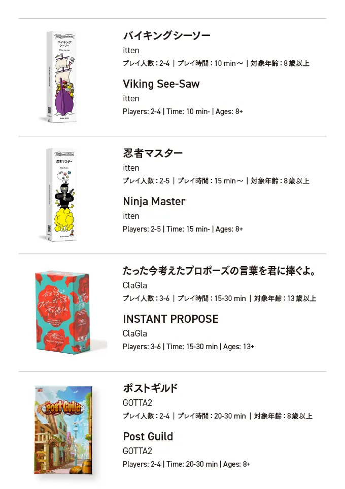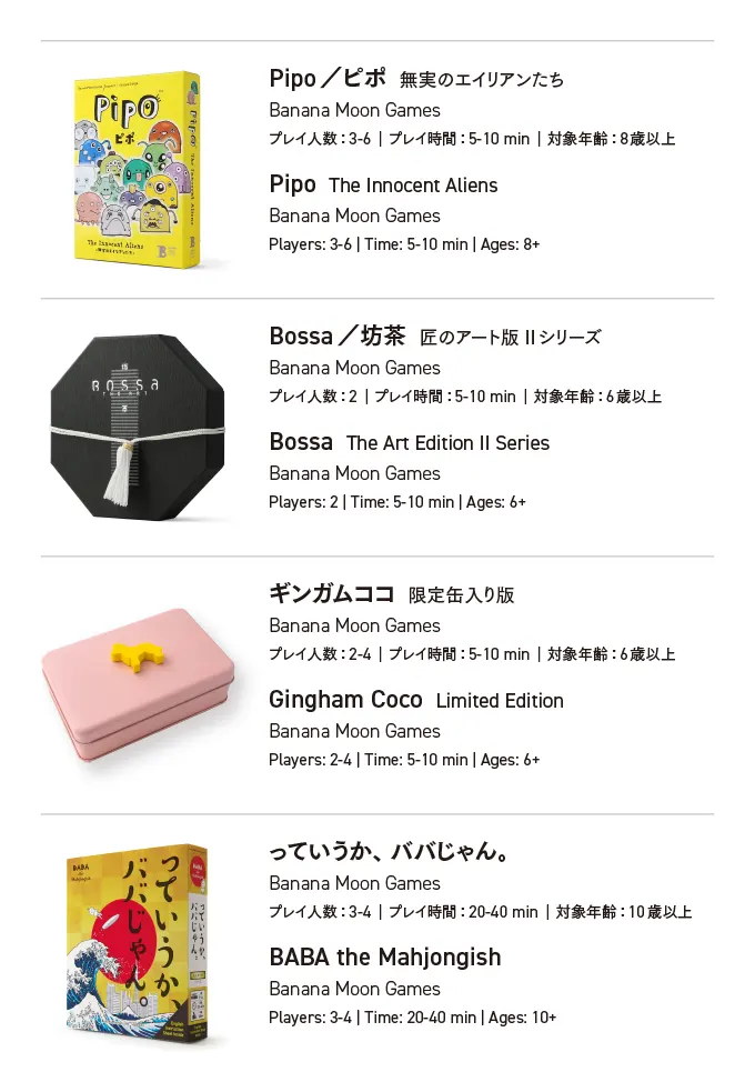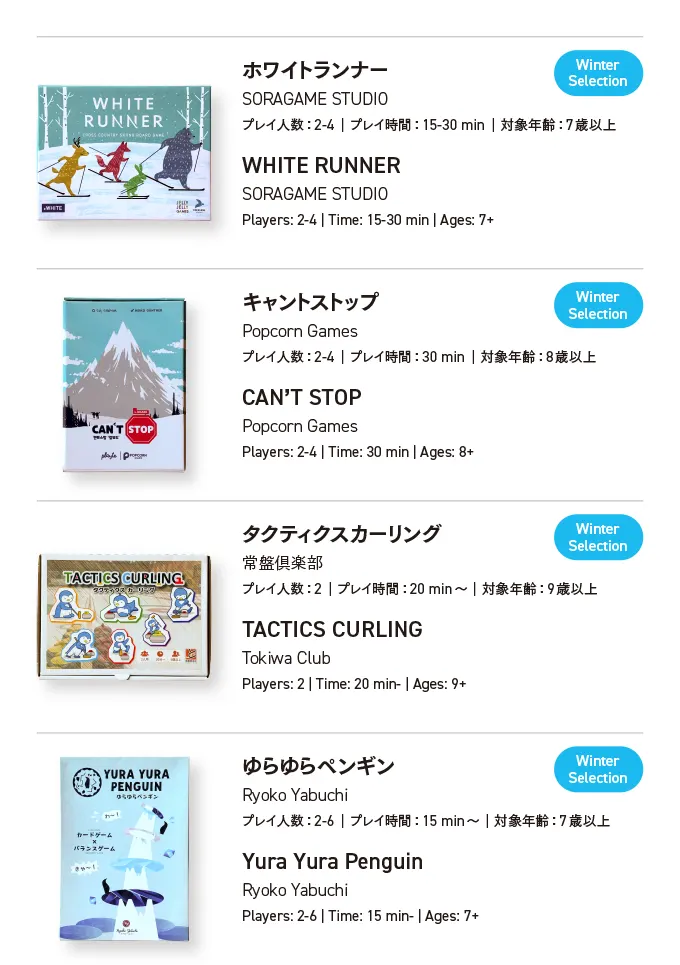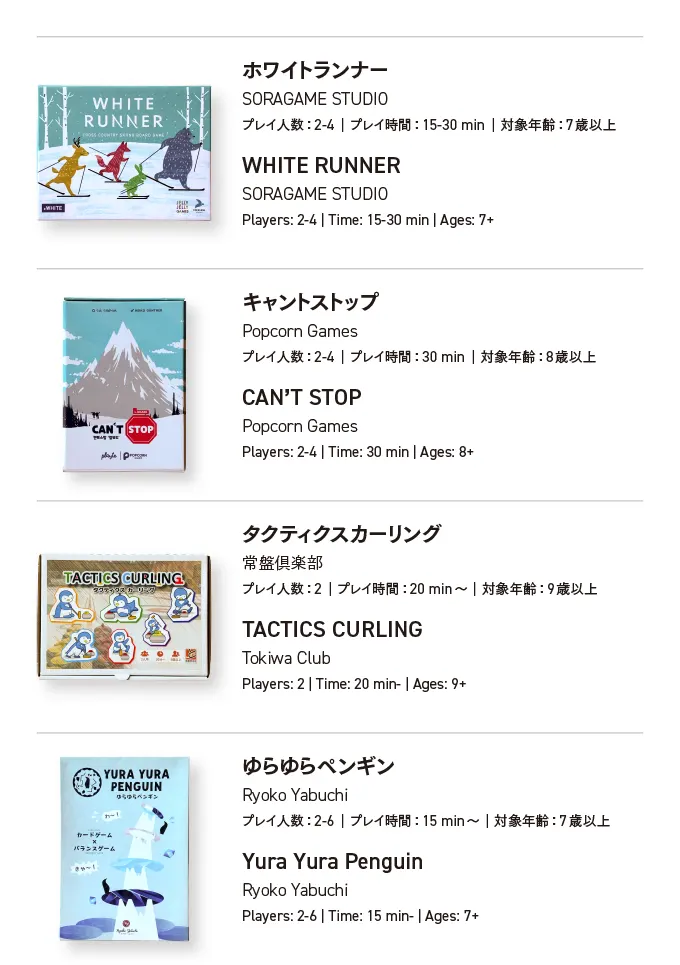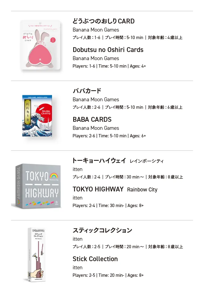 ✓ Including titles from Niseko-based board game publisher Banana Moon Games, a variety of games available!