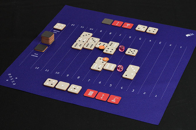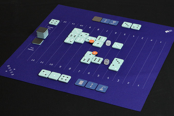 ダイス(サイコロ)とタイルを使い、自陣・敵陣に分かれて対戦する2人ゲームです。
