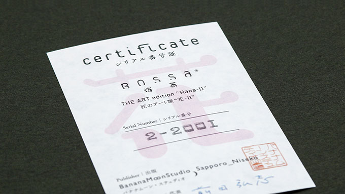 匠のアート版“花-II”:箱を留める紐と房。簡単に着脱できる形態をデザイン