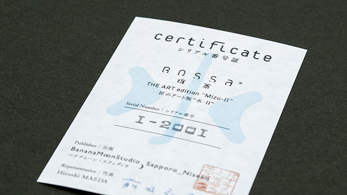 匠のアート版“水-II”の箱:タイトルロゴは銀色の箔押し、ストライプのグラフィックパターンは透明の箔押し