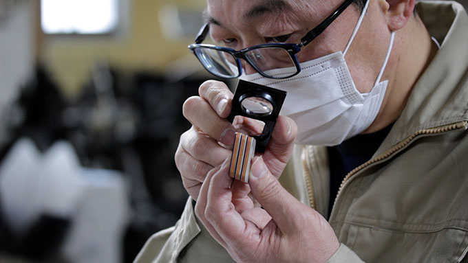 ルーペを使った職人による完成品の検査:匠のアート版
